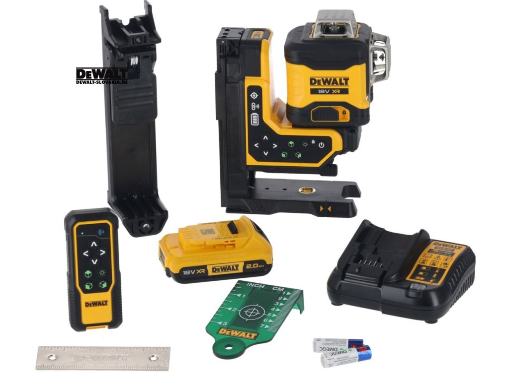 DCLE34035D1 DEWALT AKU LASER 18V XR 3X ZELENÝ PAPRSEK 360° S DÁLKOVÝM OVLÁDÁNÍM, 2AH AKU BATERIE, NABÍJEČKA, T-STAK KUFR