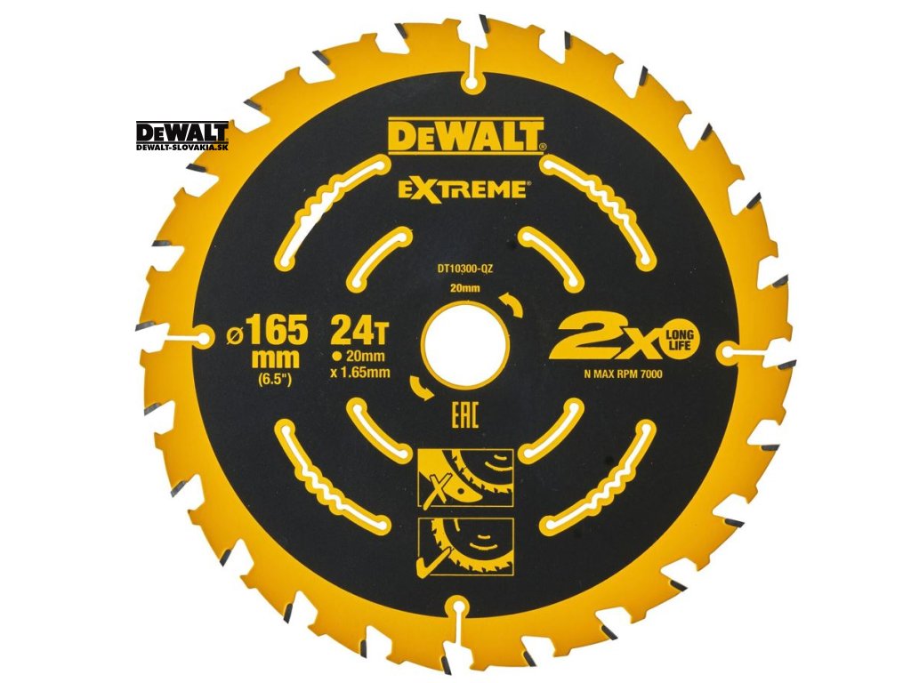DT10300 Pilový kotouč pro aku pily 165x20mm, 24zubů, ATB +20°, univerzální řez DeWALT